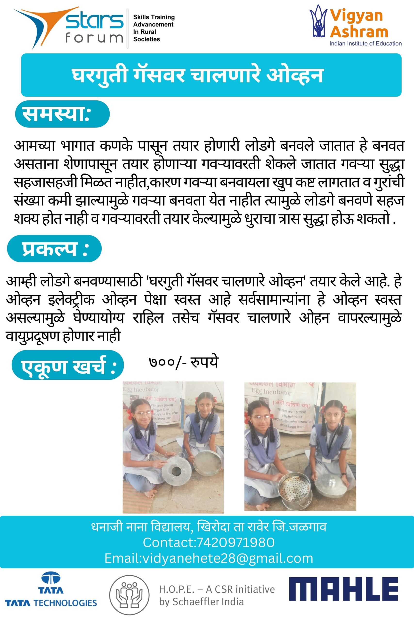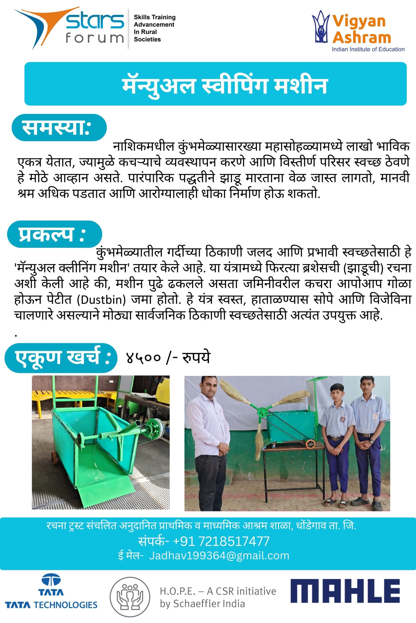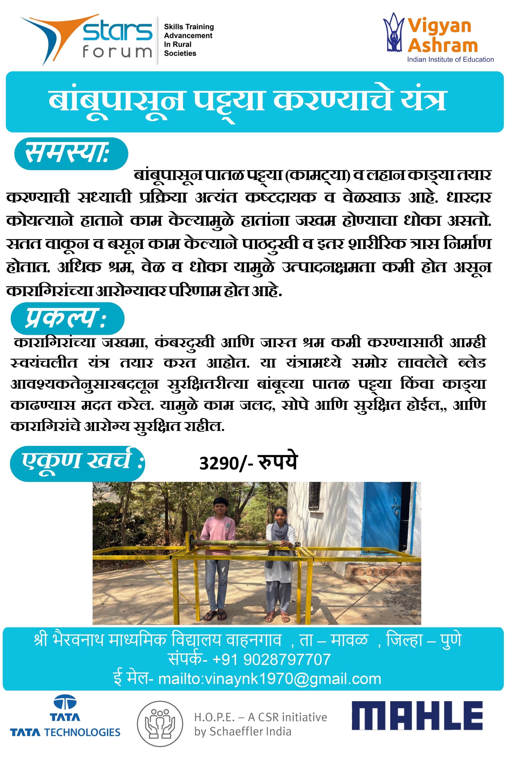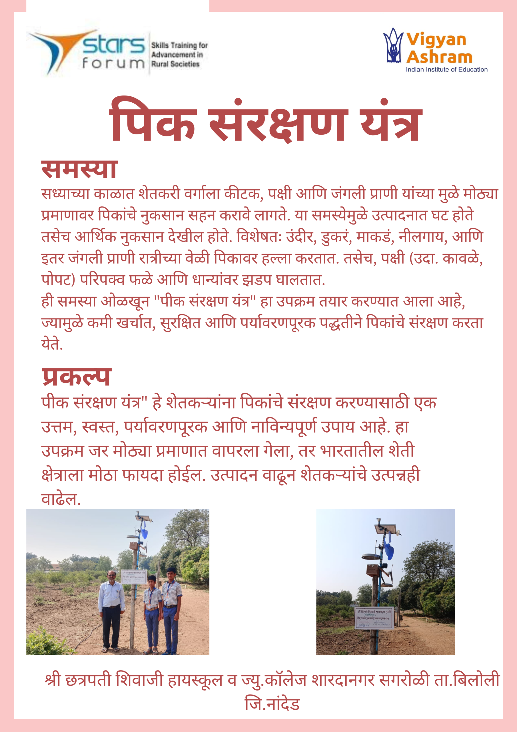 Technovation 2025 Projects Amboli – Mahua Fruit Peeling Machine Vahngaon – Bamboo Stick Cutting Machine NIgadi – Low cost seeder Kohinde – Karonda Harvesting Machine Shirgaon – Automated EC Meter Salumbre – Groundnut Shelling Machine Tung – Seed Sowing Machine Sangise – Coal Crushing Machine Shivali – Soil Sieving Machine Nagaj – Automatic Solar Device HA Pimpri – Adjustable Bench Khadaki – Eco-Friendly seat Backrest Gulani – Sun tracking Solar Cooker Waghera – Bamboo Boring / extracting Machine Moi – Live Weather Monitoring display System Madaj – Wearable Agricultural Hand Tools Dhondegaon – Mechanical Cleaning Machine Dimbe – Portable Chullha Sangola – Flower cleaning machine Nighoj – Multi-Grain Seed Separator Narayngaon – Manul Pipe Bainding Machine Dhamari – Futuristic umbrella Chas – High-Rise Painting Machine Katraj – Nutrient Box (Macoro Green) Hiware – Multi-Purpose Hoeing Tool Chikhali – Garlic Planting Machine Asade – Ground Marking Machine Nirgudsar – Easy Rope Making Machine Benapur – Peanut shell breaker and Seperator Tulapur – Anti Theft Alarm system for Motor Pump Chikhalgaon – Liquid Logic Machine Khiroda – Household Gas-Based Oven Project Shivkar – Grain Threshing Machine Padsare – Automatic Dry and Wet Waste Segregation Machine Rajapur – Extentable Mechanical Legs Anjarle – All in one – Sugaran Shelgaon – Jawar extracting Machine Khiroda – Waste water treatment Sagroli – Shri.Chhatarpati High School Organised by Supported by